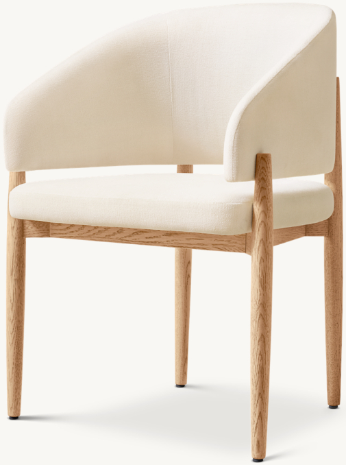 635 €Member /913 €RegularModern contours combine with maximum comfort in Martin Cook's Eva chair. Handcrafted of solid American white oak with tailored upholstery, the curved barrel back offers cradling support. Tapered legs that extend above the base soften the frame's silhouette and complement the comfortably padded seat.
