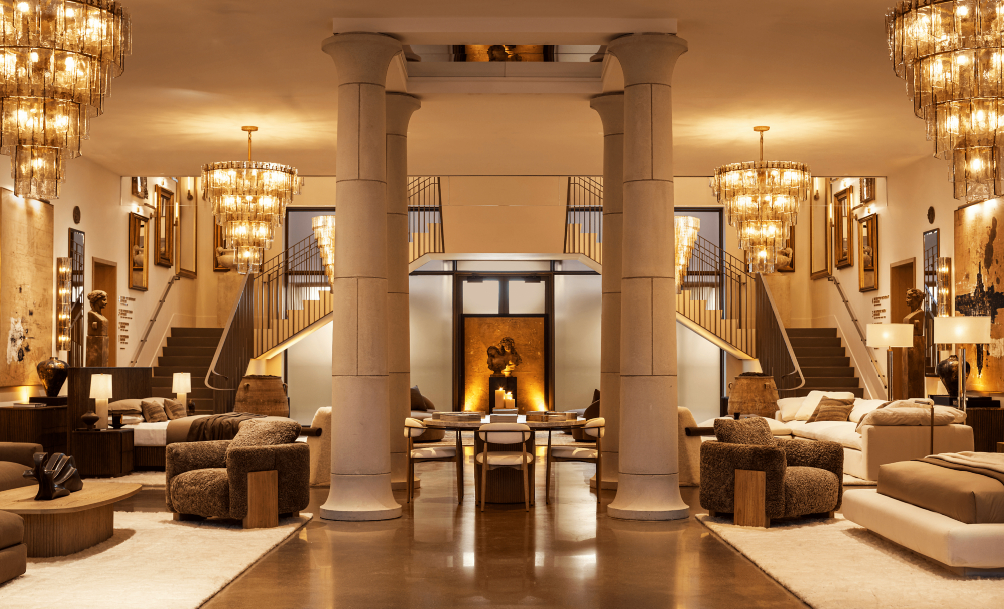 Our four-story, 60,000-square-foot design gallery blurs the lines between residential and retail, indoors and outdoors, home and hospitality. Dine beneath a dramatic glass-and-steel atrium amid sparkling chandeliers, heritage olive trees and a cascading center fountain in our rooftop restaurant, which opens onto a beautifully landscaped garden. The Gallery seamlessly integrates artistic installations of home furnishings with rare art, antiques and artifacts from across the globe. Visit RH Interior Design and interact with our professional designers, who can help reimagine your space and conceptualize a fresh and inspiring way to live.
